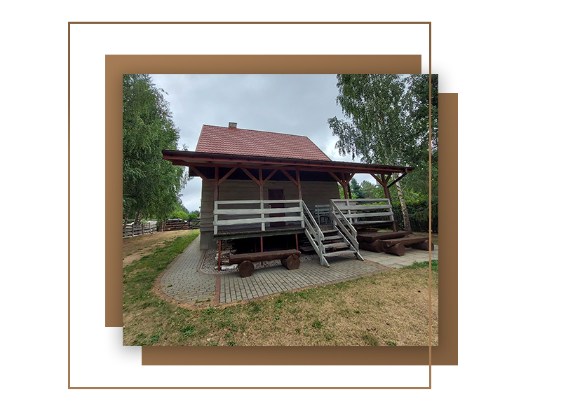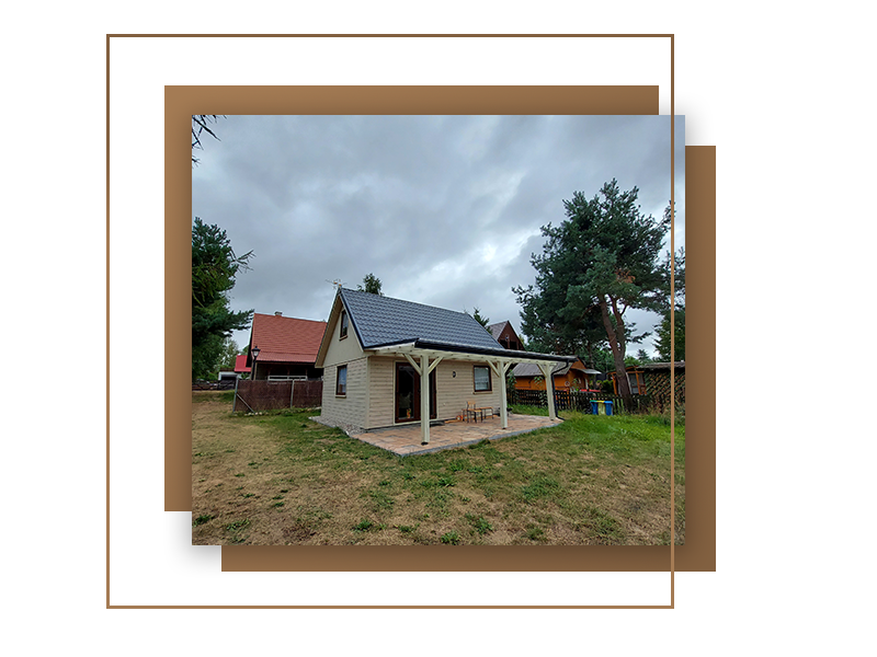 Domek nr. 2 posiada 2 pokoje, salon łazienke oraz kuchnie.